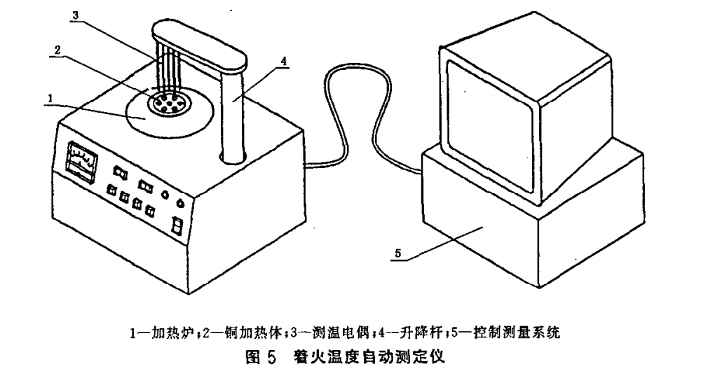 6.2著火溫度自動測定儀(見圖5):主要由加熱裝置(包括加熱爐和銅加熱體)和控制測量系統(tǒng)組成。