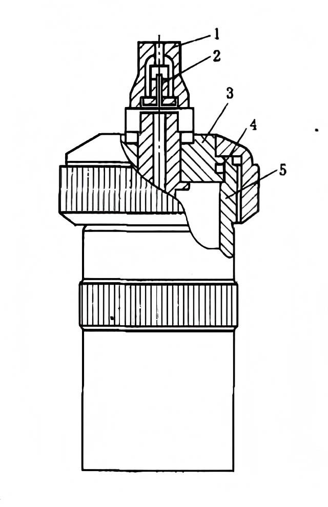 1——?dú)庾欤?——閥門;3——壓蓋;4——連接環(huán);5——彈筒