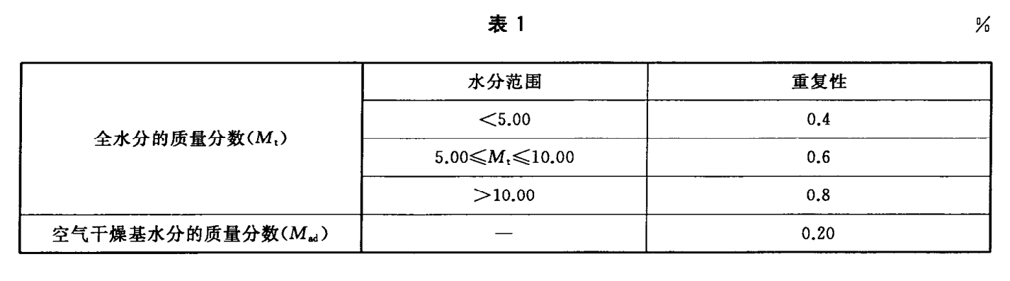 精密度:水分測(cè)定的重復(fù)性,不得超過(guò)表1的規(guī)定值